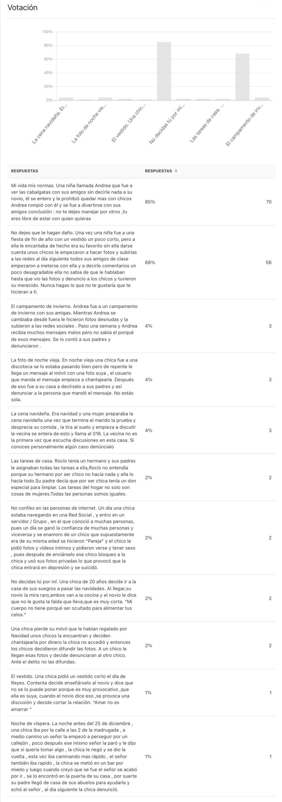 Resultados de la votación: